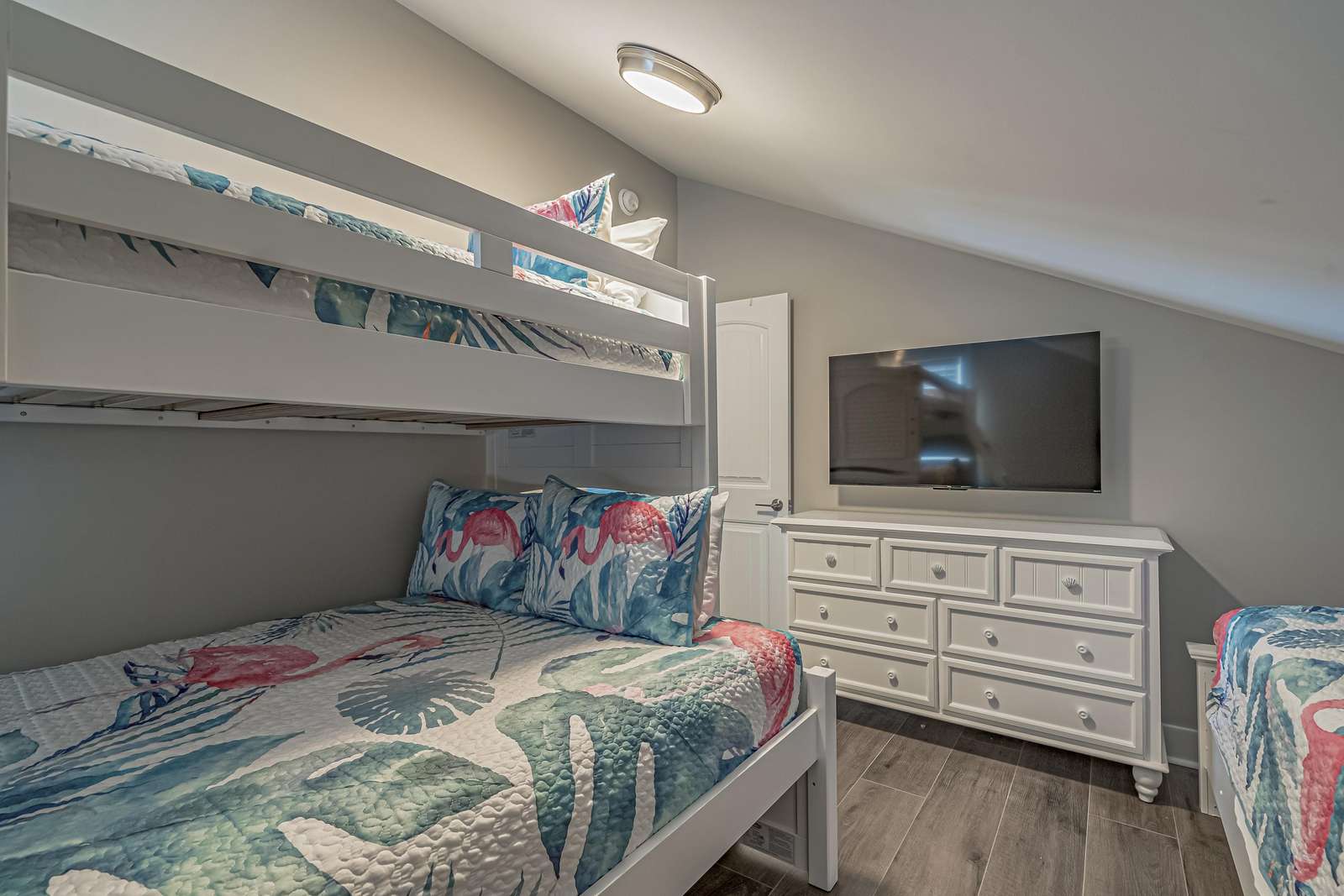 This home offers 1 King, 4 Queens, 4 twin beds. This home has plenty of parking and offers great views. You are within walking distance to the pools and the recreation building.
