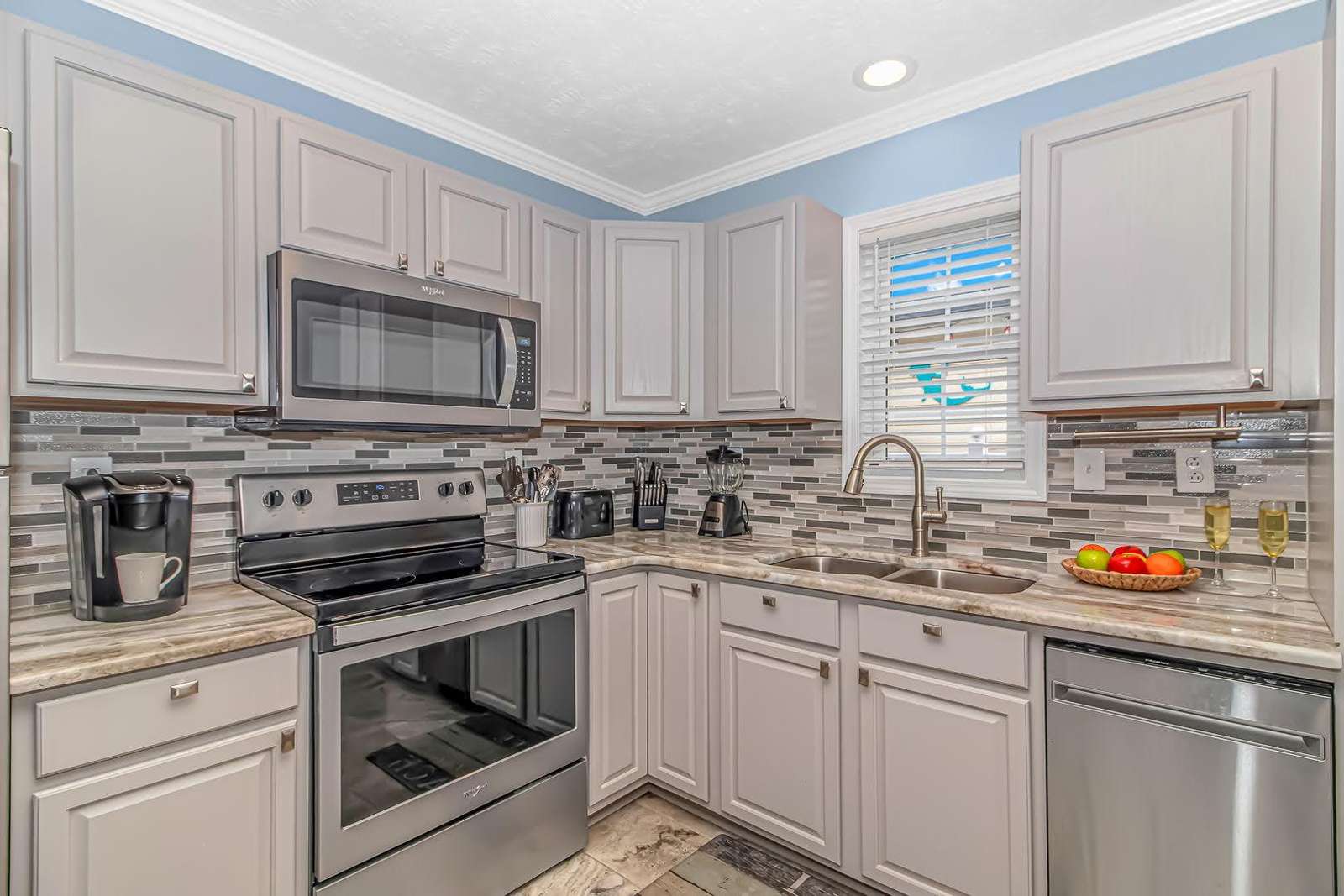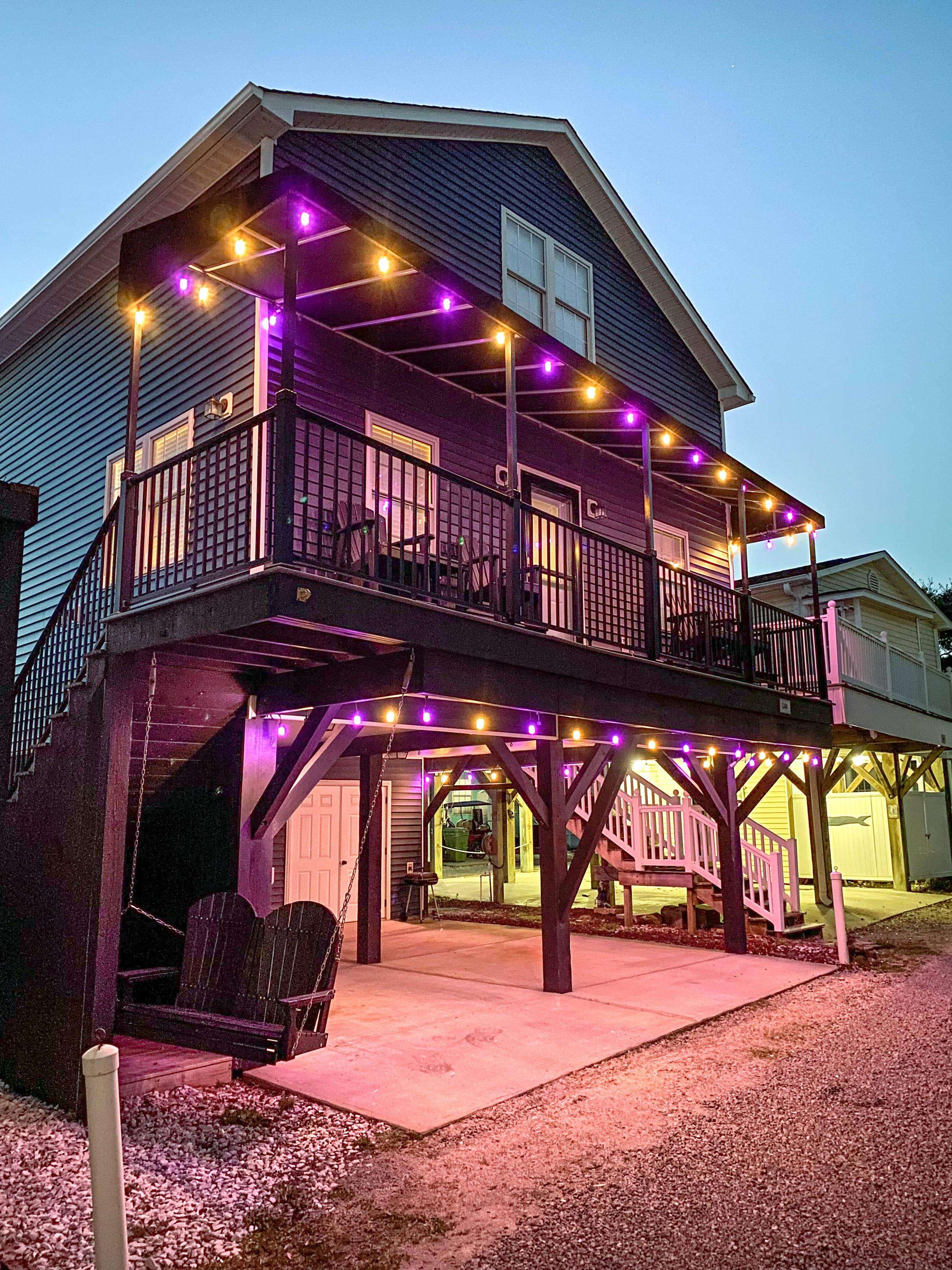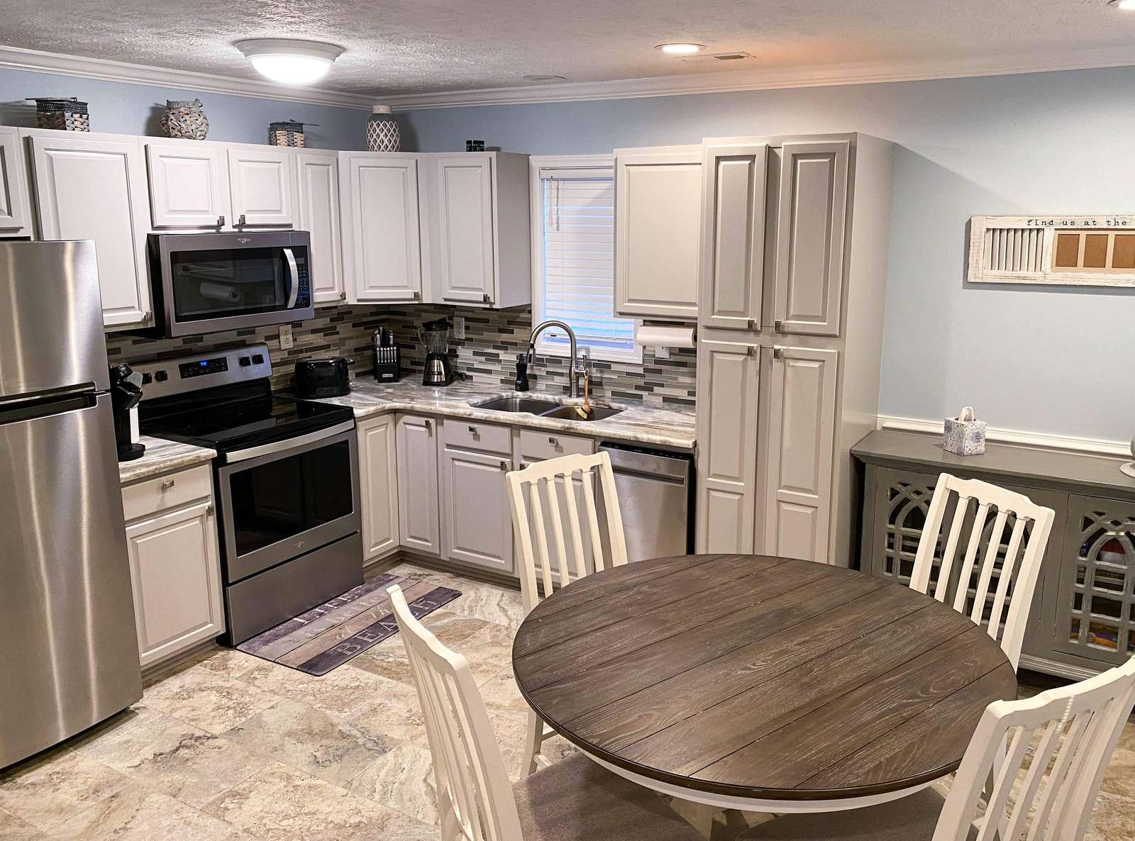 Amenities include: Smart TVs in main sitting area (cable and streaming) and in every bedroom (streaming), boosted Wi-Fi, table-top charging stations, family games (checkers, board games, card games, etc.), fridge/freezer, dishwasher, stove, oven, microwave, Coffer Makers Keurig, 12-cup ad large pot toaster, blender, dining table (with optional leaf to add space), cookware, utensils, plates, cups, and basic kitchen necessities, a gas grill located on the ground level, fire extinguishers and Co2 detector for safety, outdoor shower for sand removal, swing bench and onsite parking for 2-3 vehicles under the house.