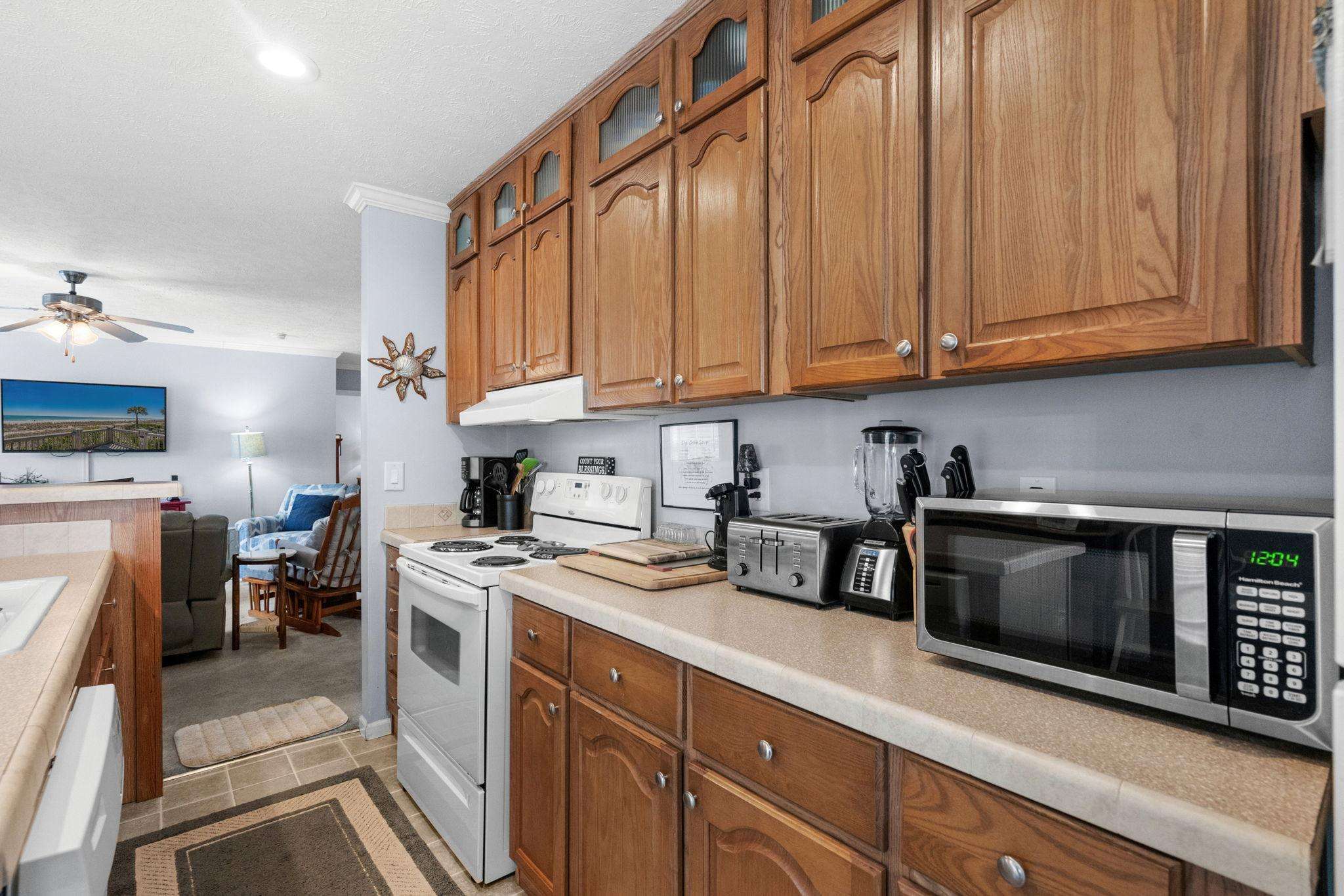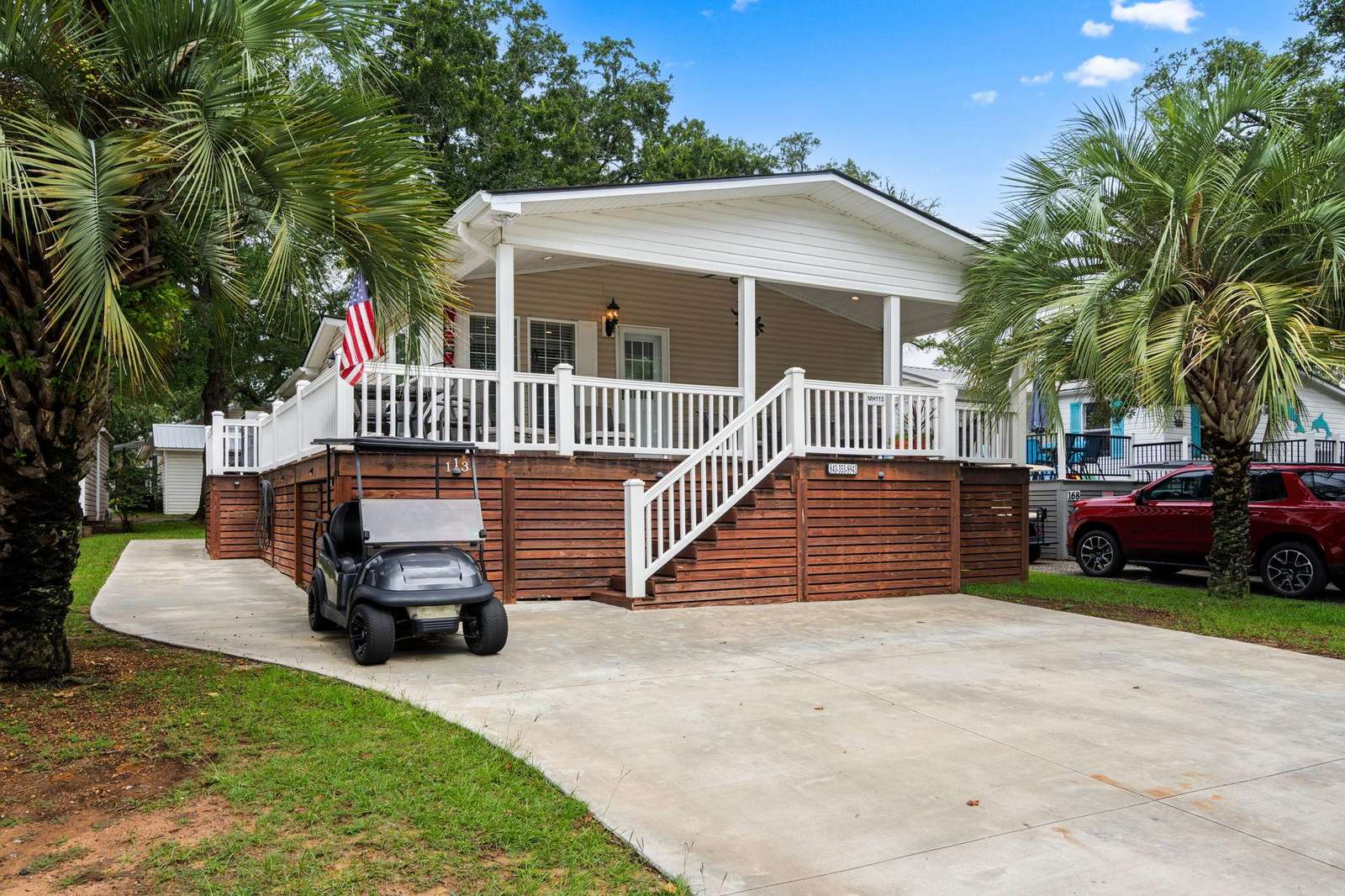 Just a two minute golf cart drive to the grocery store, Sandy's Meet & Eat and the Water Park