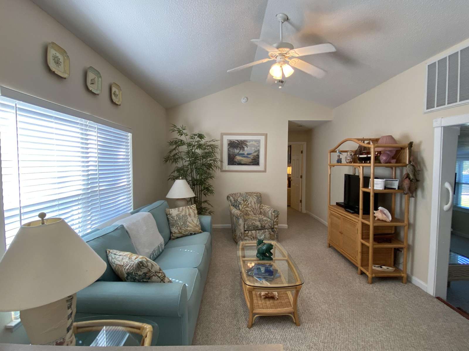 Unwind at the Sandy Feet Retreat, your cozy home in Ocean Lakes Family Campground! This 3BR/3BA house features a golf cart, two living spaces, and a relaxing porch.