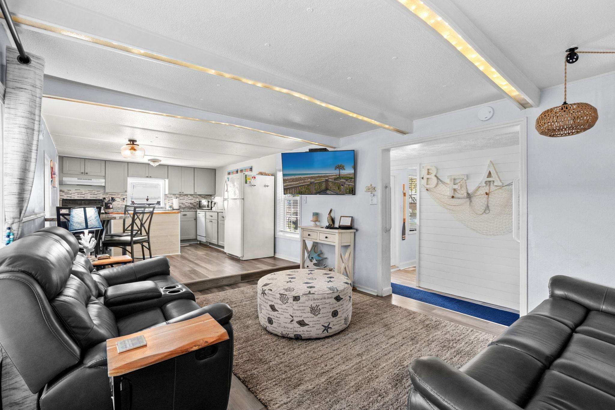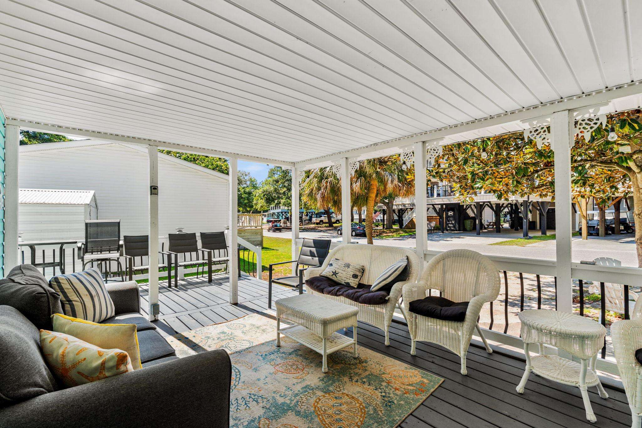 Beautiful 4 bed/2bath in the Award Winning Ocean Lakes Family Campground. Plenty of room for 10 guests to enjoy the South Carolina Sun! Sit out on the front porch while the kids play in the yard or take a cruise around the park to Sandy’s Meet & Eat