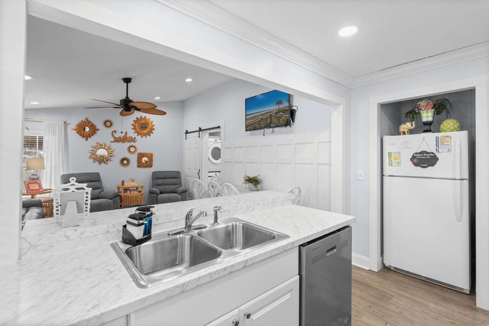 The Lilly Pad is the perfect vacation rental for a small family looking for a beautifully decorated home right in the middle of everything! Steps away from the pool, Sandy Mart, Coin laundry (Soapy Suds), and a golf cart ride away from the beach!